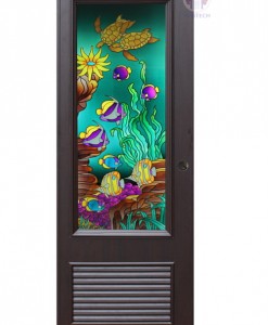ชุดบานประตู พีวีซี ท็อป ST-SMART รุ่น ST034 เต่าทะเล กระจก3-4 สีวอลนัท