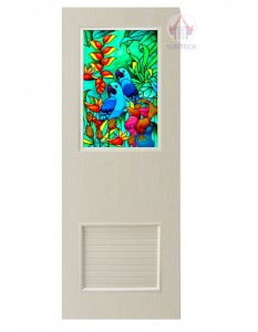 ชุดบานประตู พีวีซี TOP กระจกตัวใหม่ สีวอลนัท นกแก้วมาคอ